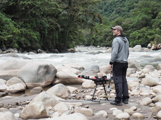 Se lanza un dron lidar en el fondo del valle de Vilcanota. D. Sieczkowska