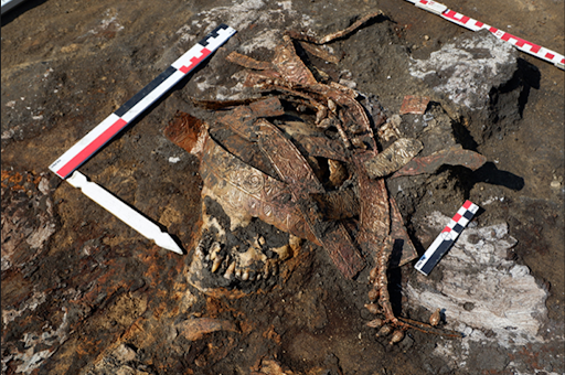 También se colocó un cuchillo de hierro envuelto en tela y una punta de flecha bifurcada de forma única cerca de la mujer, lo que sugiere que era una amazona, guerrera escita que cabalgaba a lo largo de los jinetes nómadas de Irán y Europa del Este.